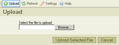 The upload* button, in the toolbar, opens the "Upload Pane", which can be used to add new files to the current folder. Here is a screenshot of it: